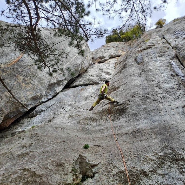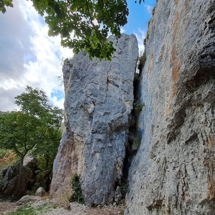 A striking rock wall nestled in the forest. The Petrella crag is a vast climbing area with over 100 routes of all levels, ranging from grade 5 to grade 8. Part of the wall lies in a pleasant pinewood, while another section is exposed to the sun, offering different climbing opportunities all year round. - Placche di Bini – Petrella Liri
